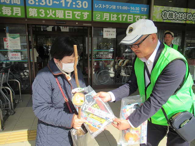 年金支給日に合わせ、小松島市ライオンズクラブと連携し、JA産直市あいさい広場で特殊詐欺被害防止キャンペーンを行いました。